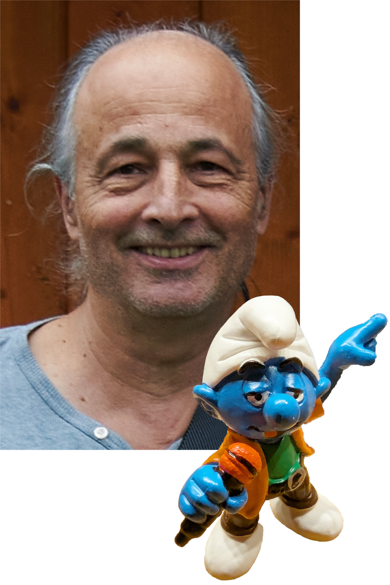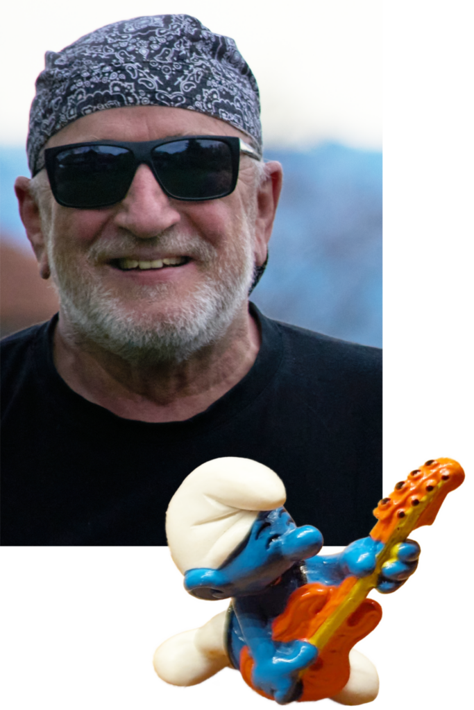 Unser Professor. Singt die Songs nicht nur, sondern weiß auch alles über ihre Geschichte und sorgt für entsprechende Weiterbildung bei Mitmusikern und Publikum. Beherrscht bandinterne basisdemokratische Abstimmungsprozesse wie sonst keiner.